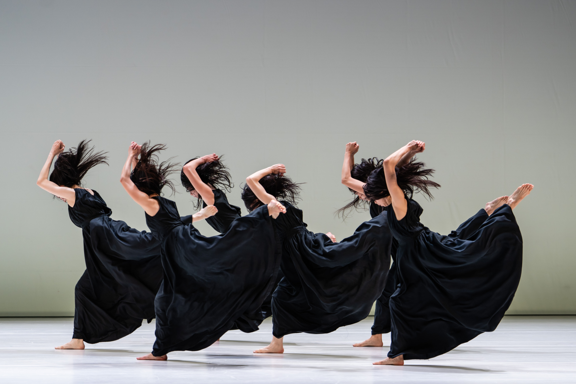 他慢慢把注意力放回環境:光線、空氣、時間的流動,這些細微變化進入作品裡,成為節奏與氛圍的基礎。作品前段長達13分鐘沒有音樂。舞者在安靜中建立呼吸與速度,聲音來自腳步、布料與空氣的摩擦。直到後段約翰.塔文納(John Tavener)《保護面紗》(The. Protecting Veil)進來,聲音與動作才開始彼此對話。回到臺灣後,他讓每位舞者從自身經驗去理解「藍」,這次新一代舞者重演,同樣的動作,因為不同生命經驗,長出新的層次。