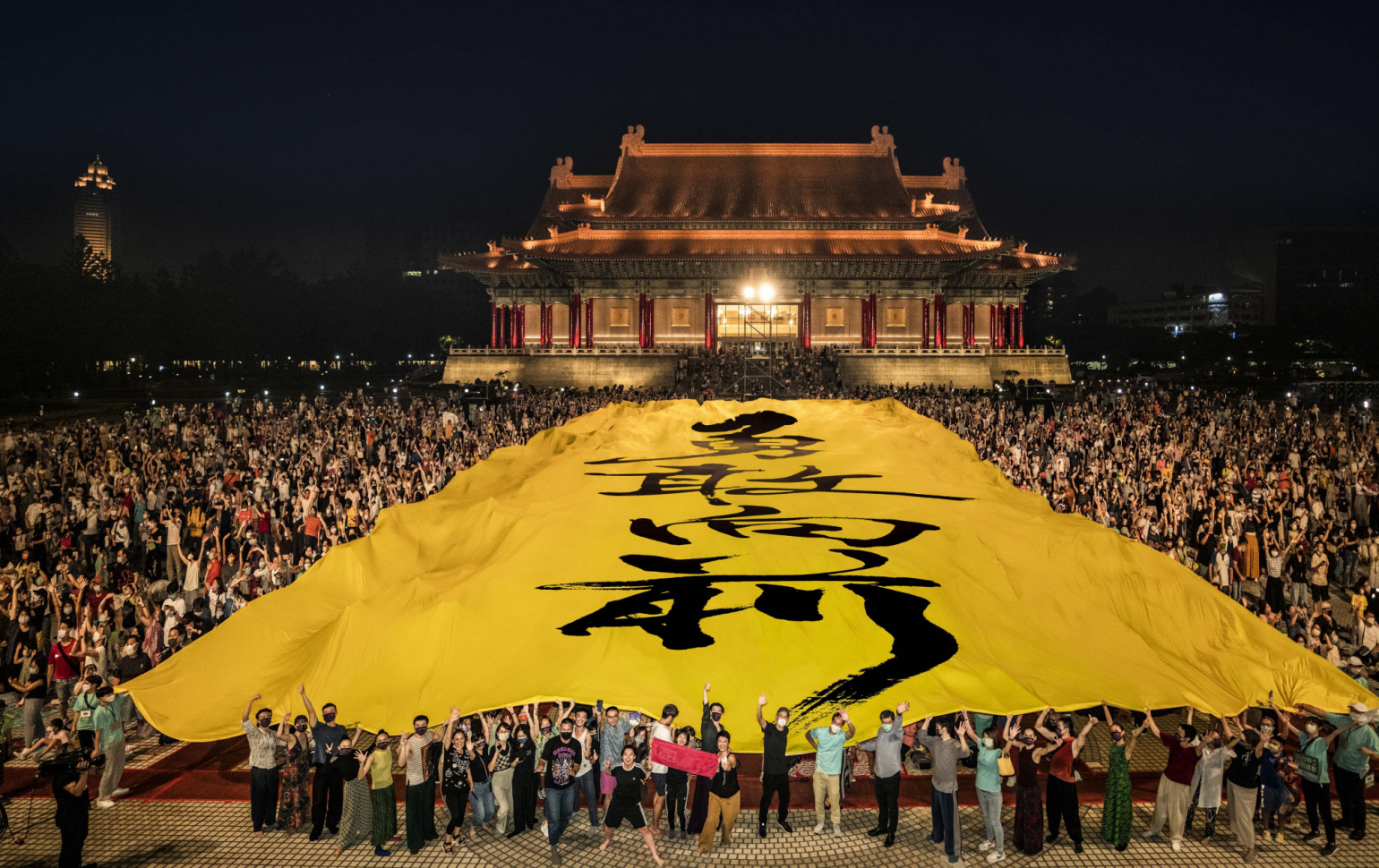 雲門舞集成立已近50年,與臺灣社會一起走過許多關鍵時刻,在2003年8月21日《薪傳》演出結束後,因臺灣社會受到SARS影響,正好藉由「大家加油」的巨型布條,帶來振奮人心的力量,這也是第一次雲門在戶外現場呈現巨幅布條。而在2013年《稻禾》首演結束後,現場拉起寫著「風調雨順」、「國泰民安」的布條,同樣振奮人心。今晚(9月17日),國泰金控第27年支持的雲門舞集戶外公演,不僅同慶國泰60週年,在這歷經疫情暌違兩年再度重啟的戶外大型公演,再次拉起巨幅布條鼓舞民眾,即便未來世界仍充滿變動與不確定,仍可以擁抱變化,一起勇敢前行,為今晚畫下完美句點。