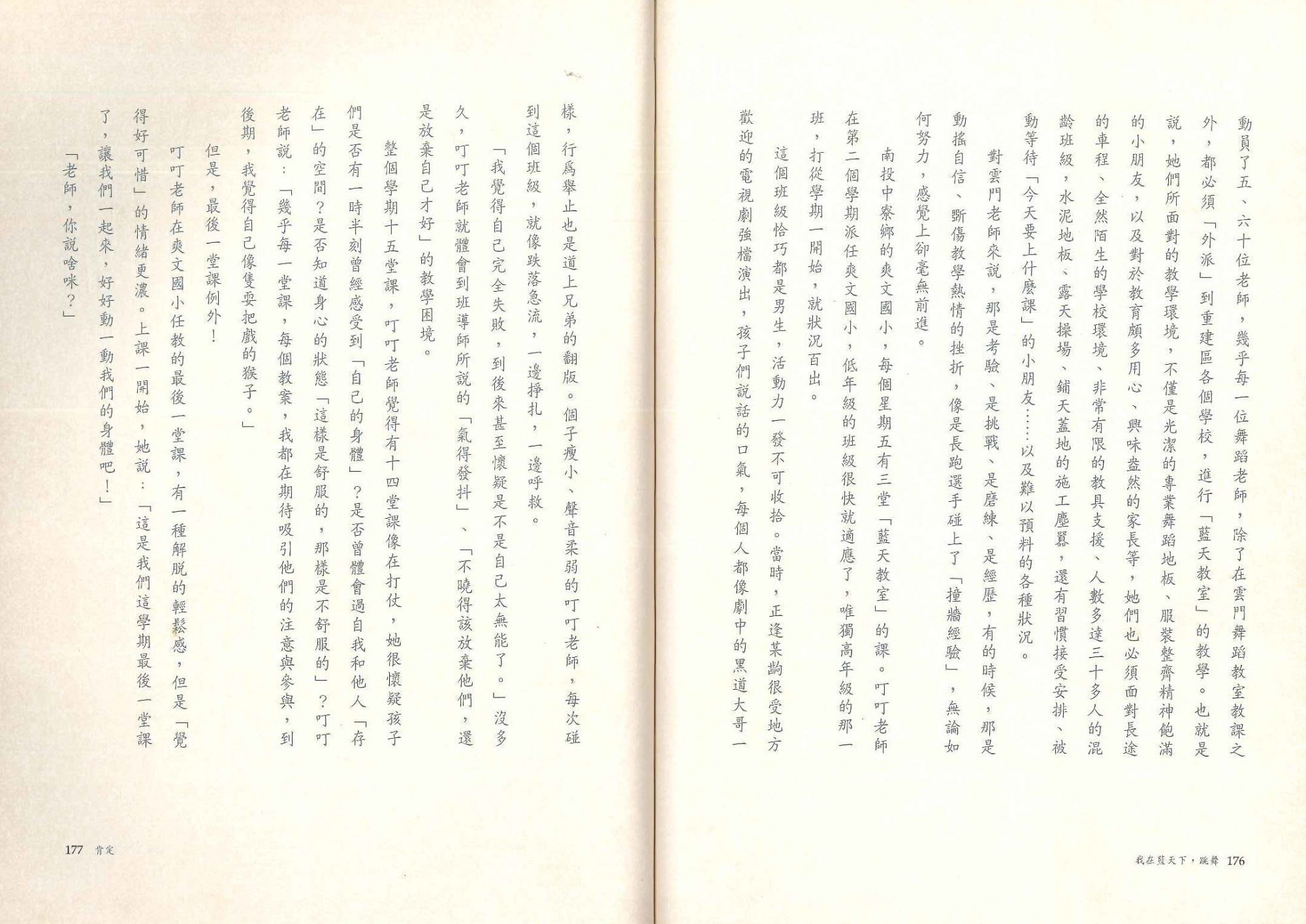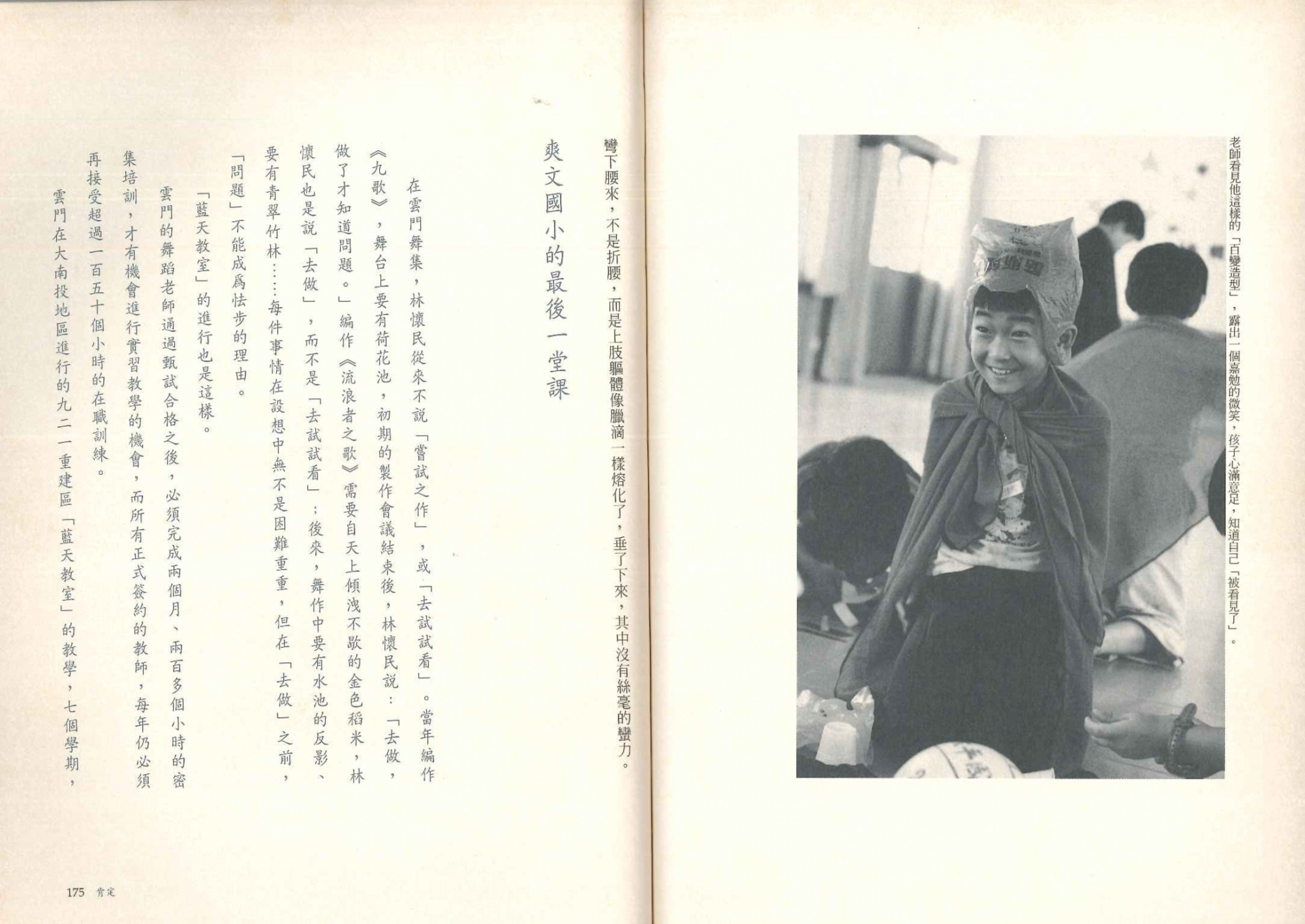 收錄於《我在藍天下,跳舞:雲門「藍天教室」的故事》2004年,天下雜誌出版